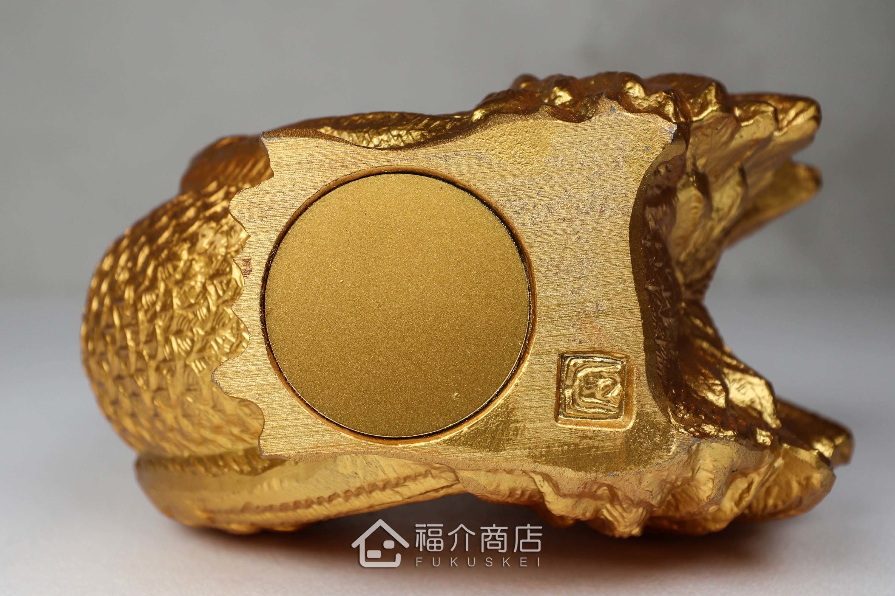 此作品為金工作家村田宏的匠心之作,他的個人風格以細膩的金工製作技巧與原型開發創作為名,此款置物既可作為開運擺飾也可當文鎮來使用。