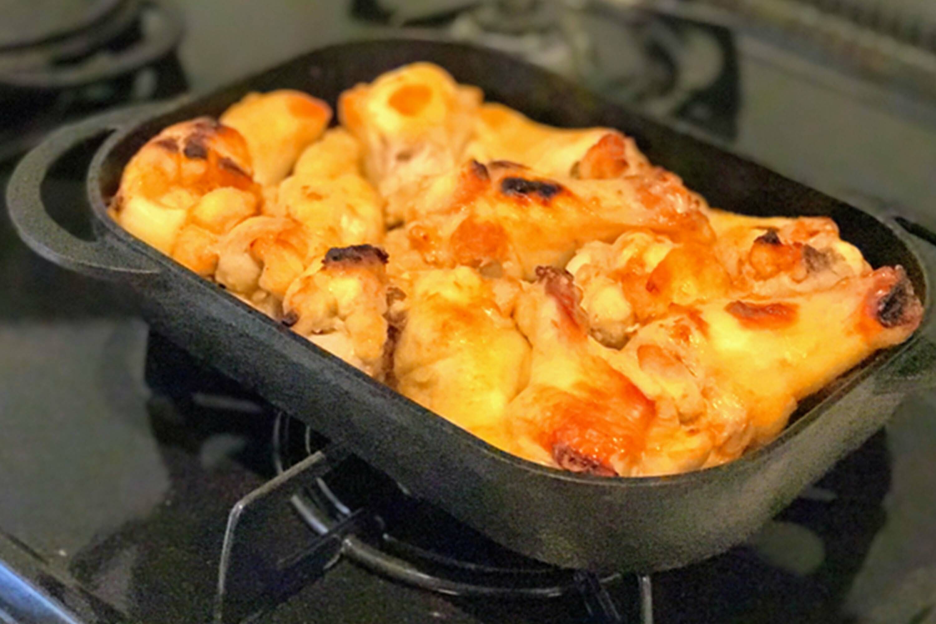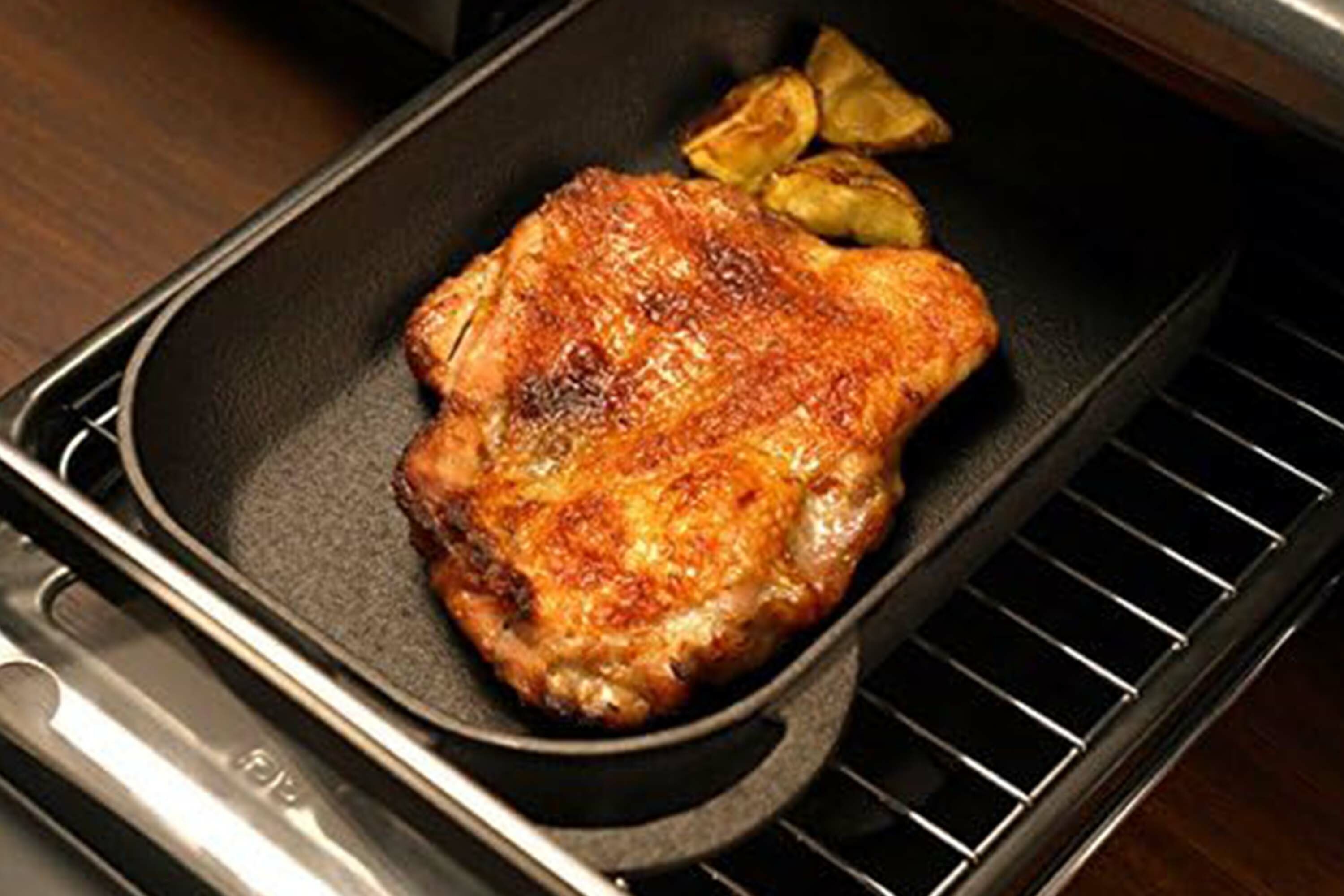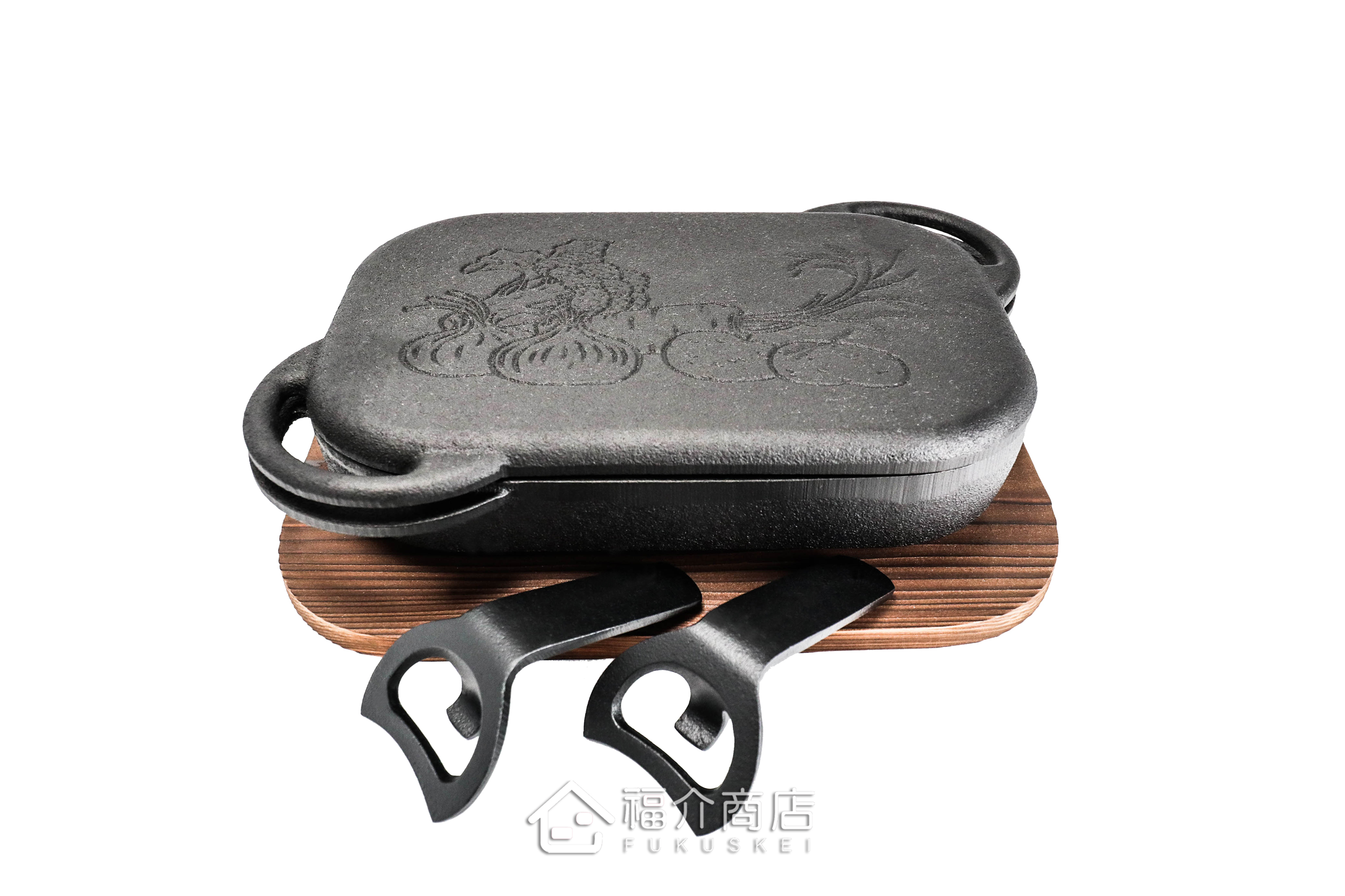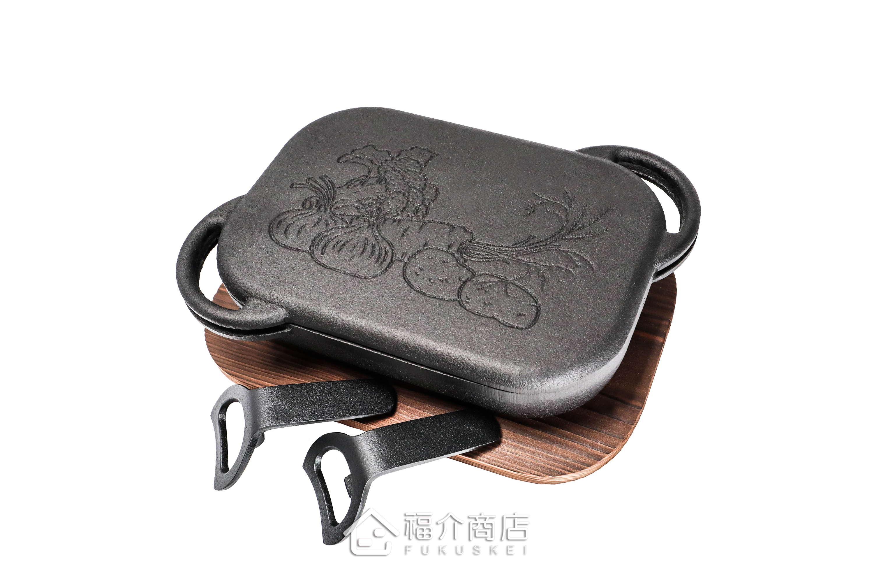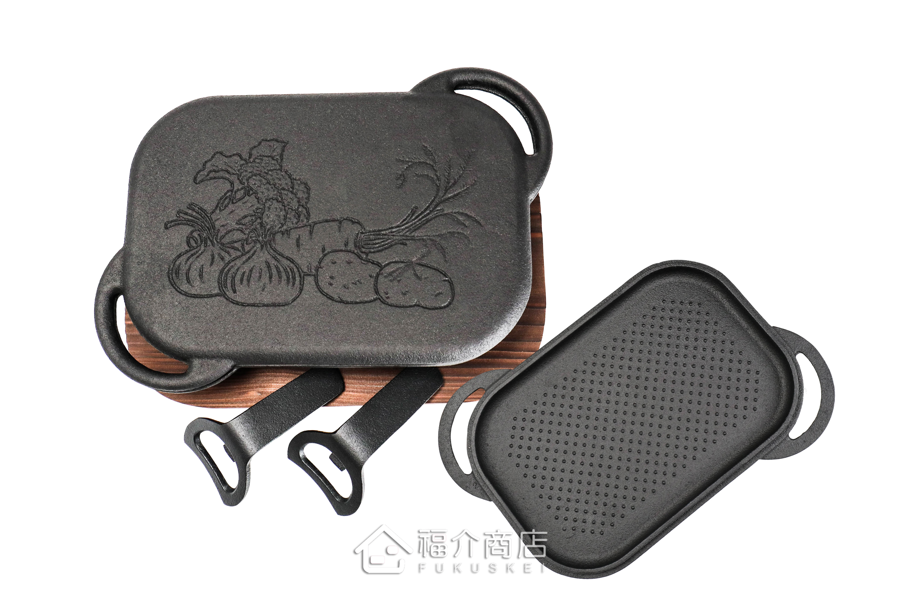 此款烤盤的上、下盤都可烹飪使用,鐵蓋的去油防沾黏凸點設計,降低食物的含油量,在料理肉類燒烤、烤麻糬時也不會黏鍋;鐵蓋熱循環加乘效果好,手工打造的鑄鐵烤盤傳熱快、導熱均勻、蓄溫力強,且鑄鐵烤盤在料理時會釋放出鐵離子溶入食物內,輕鬆料理出健康少油的美味料理。