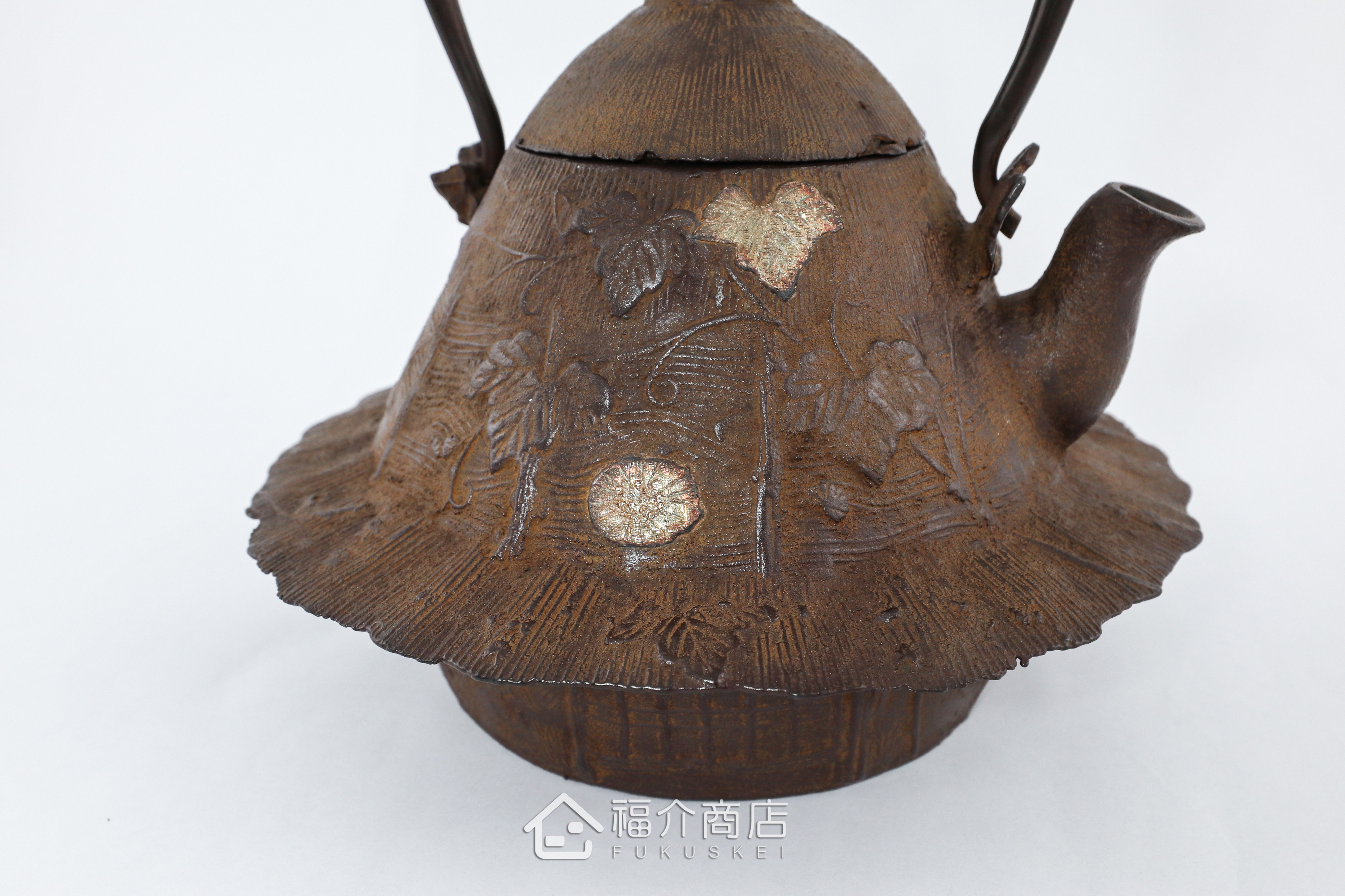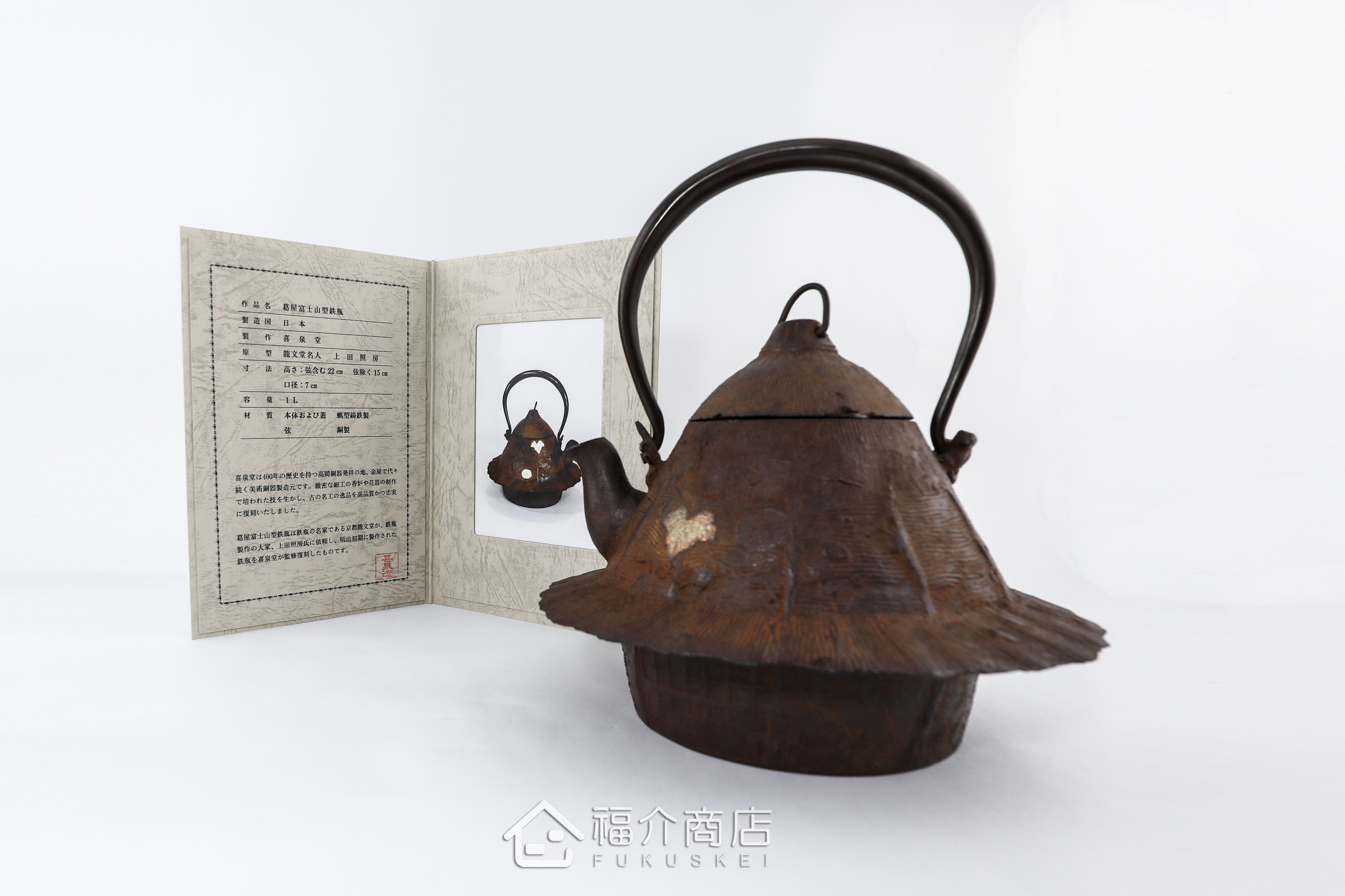 |材質|鑄鐵 (壺體/壺蓋)、銅(提把/壺蓋上的D型環)