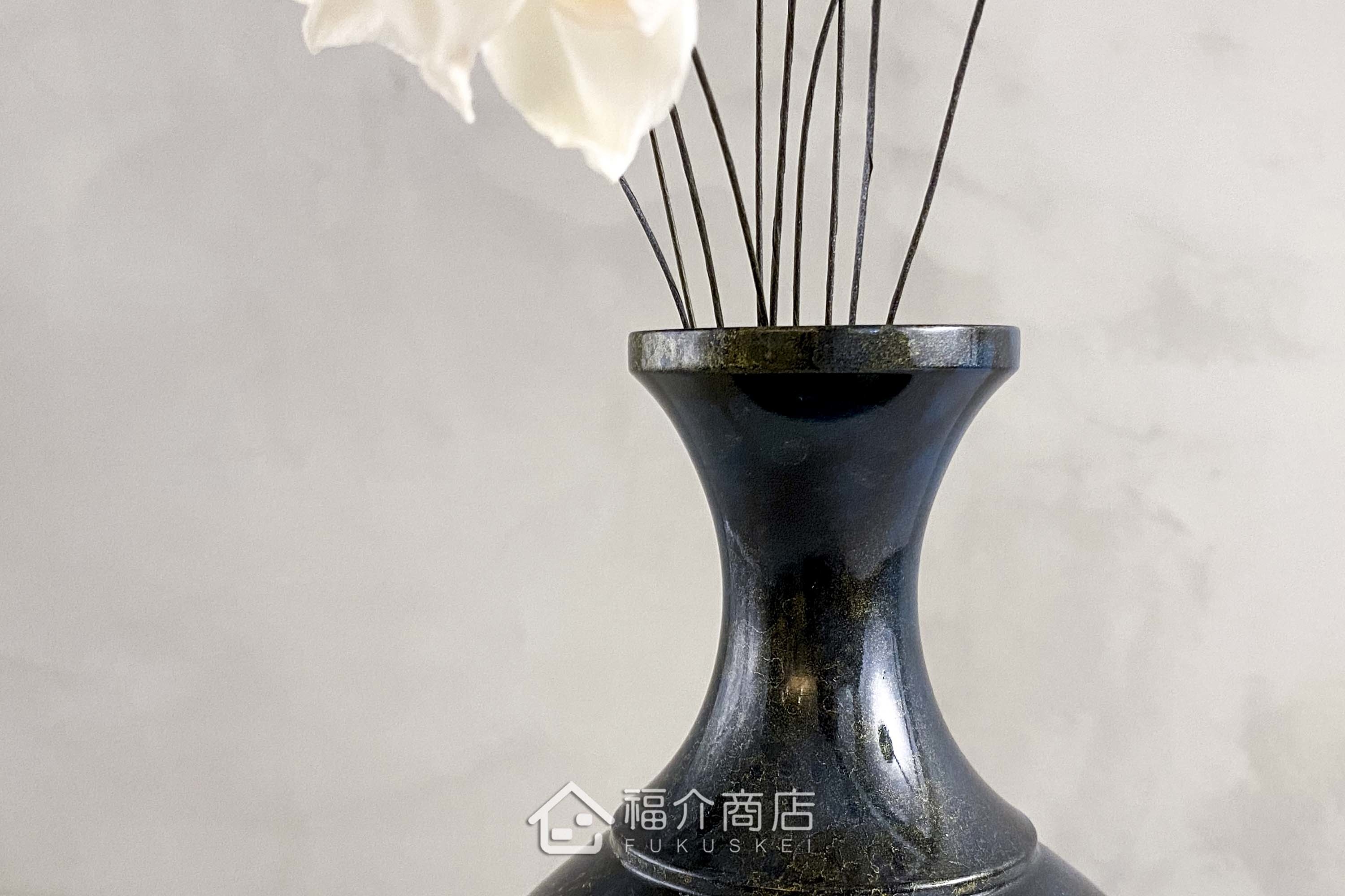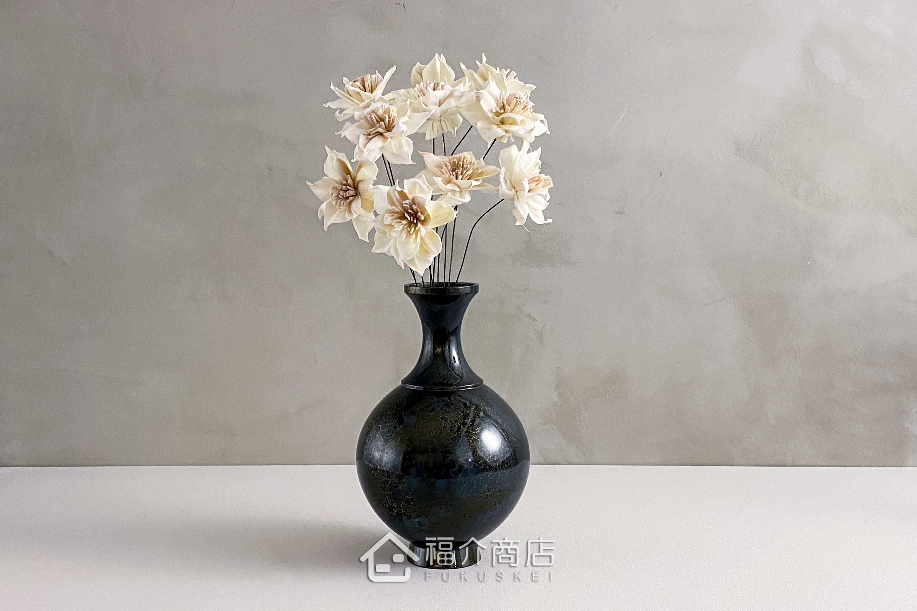 瓶身紋路交織成網,黑中帶藍,典雅中蘊含安定、沉靜,插上素雅的幾枝立花,盡顯高雅品味!