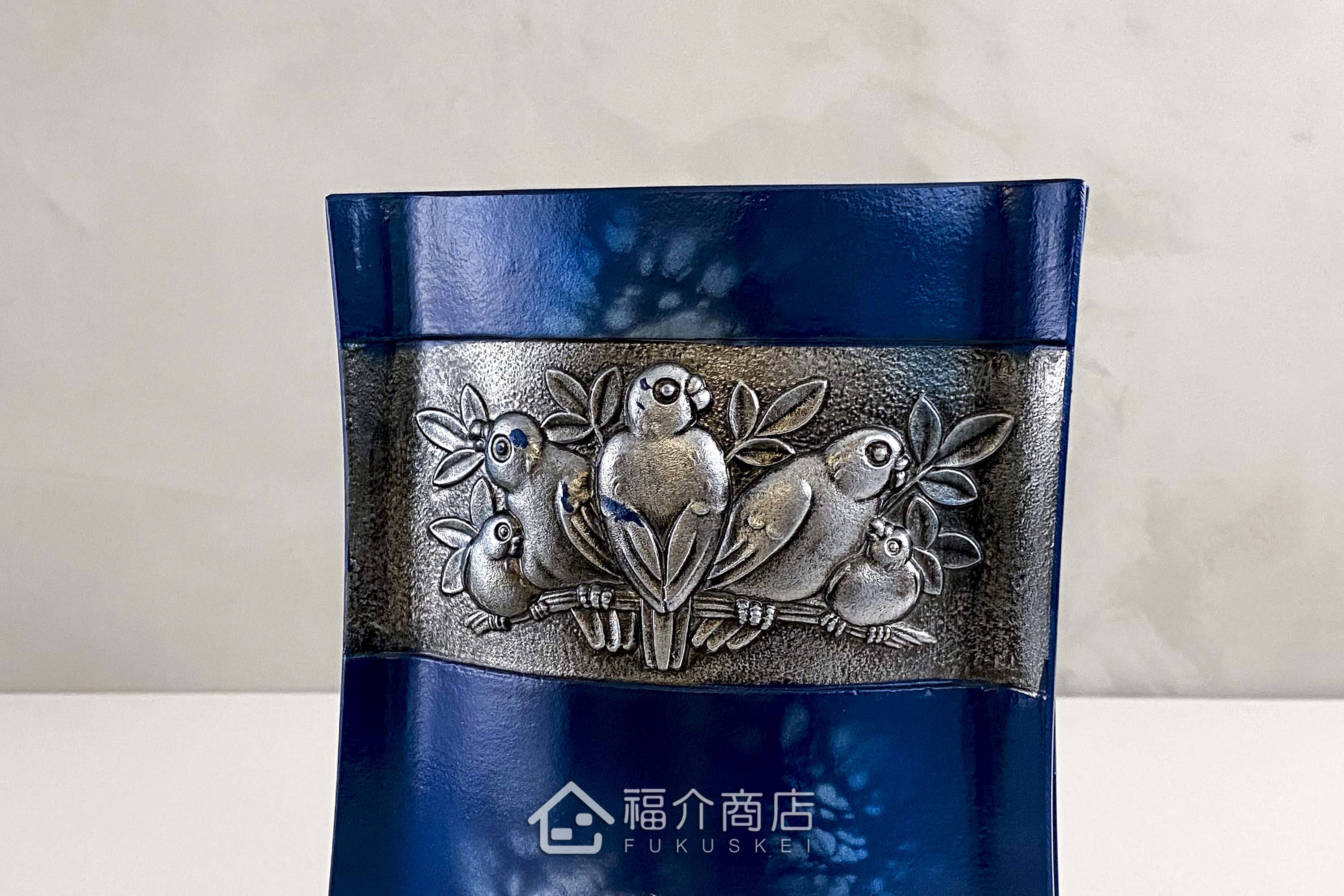 一面為貓頭鷹圖樣、另一面為鳥類圖樣。扁平型的瓶身獨特而不浮誇,即使不插花也獨立美麗。