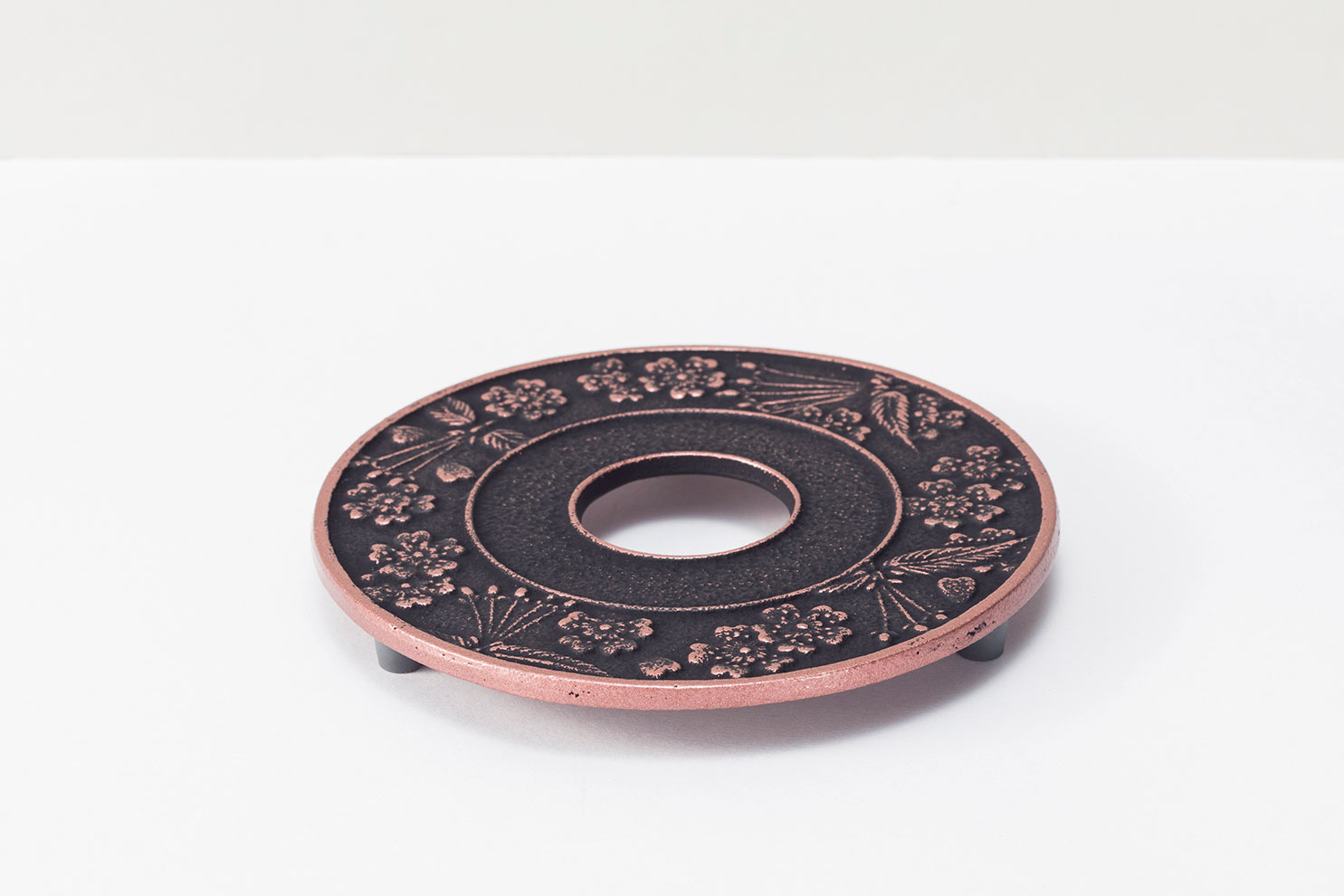 因鐵壺蓄熱性強,溫度較高時建議放壺墊上,以免傷到桌面,除了當壺墊以外,也能做為鍋具隔熱墊使用。底座三腳有矽膠襯墊保護,具有防滑效果。