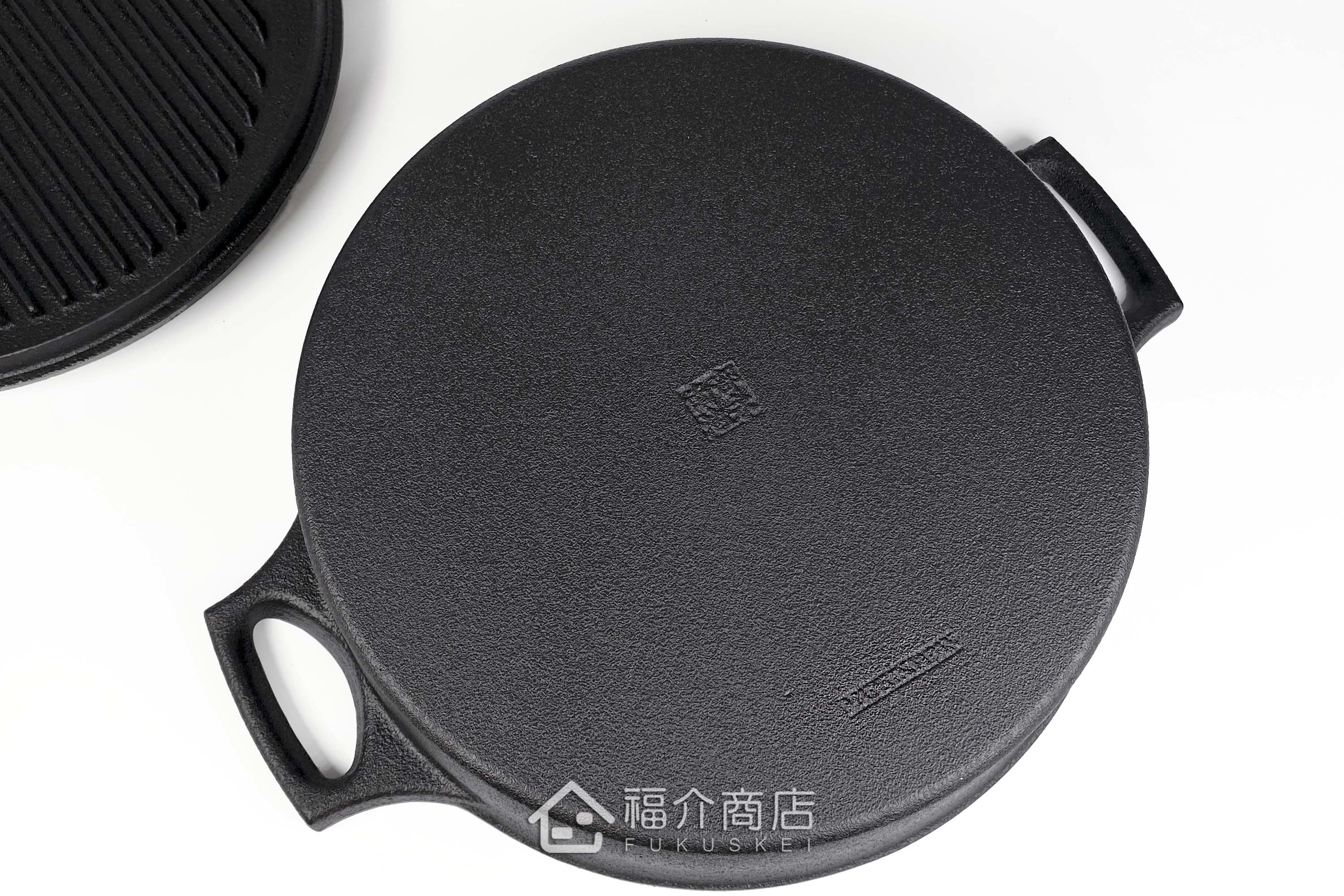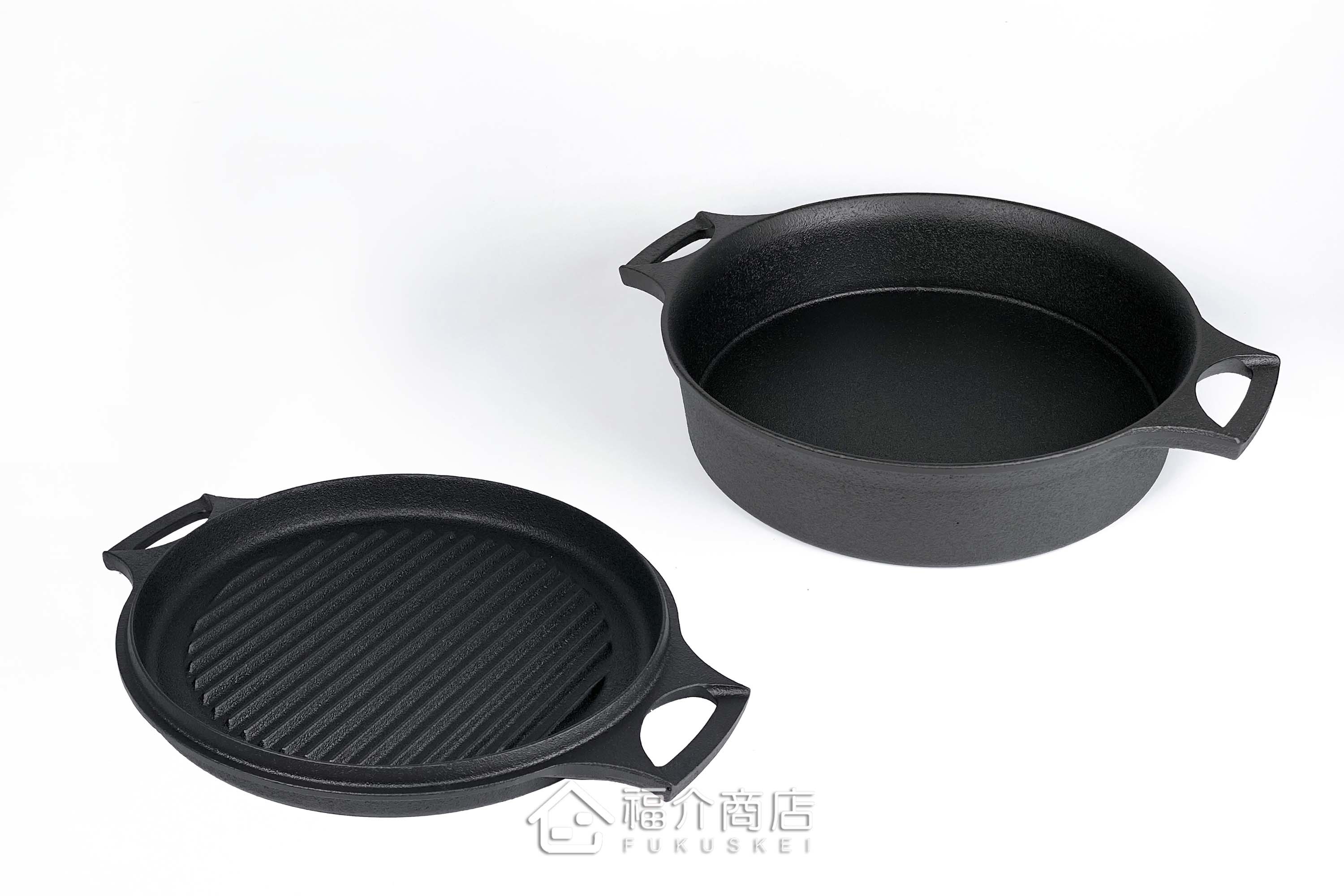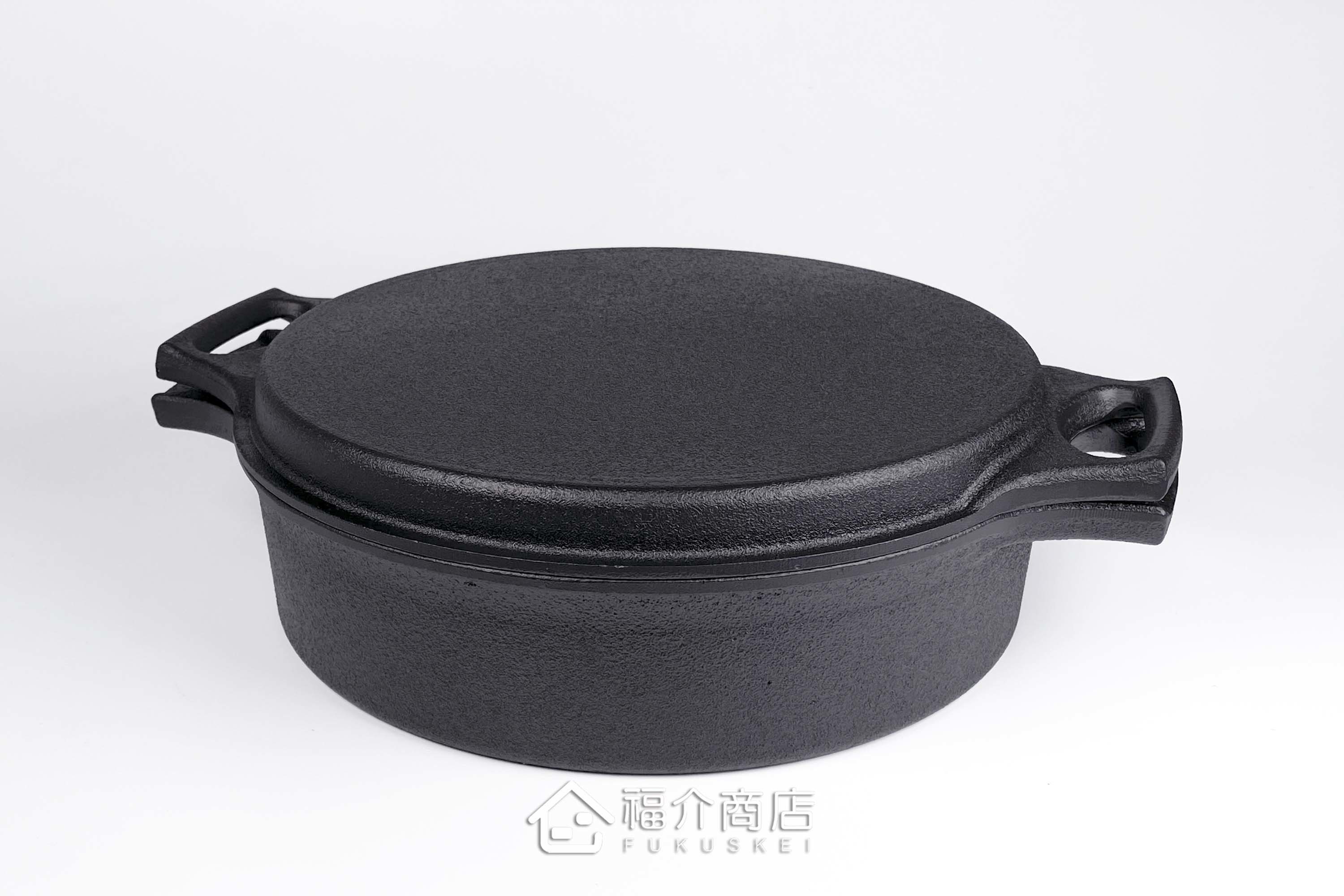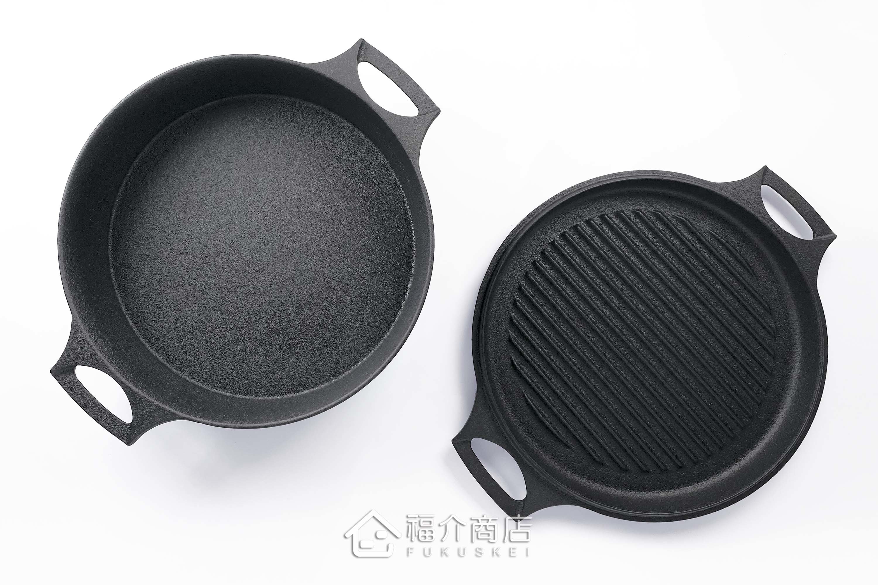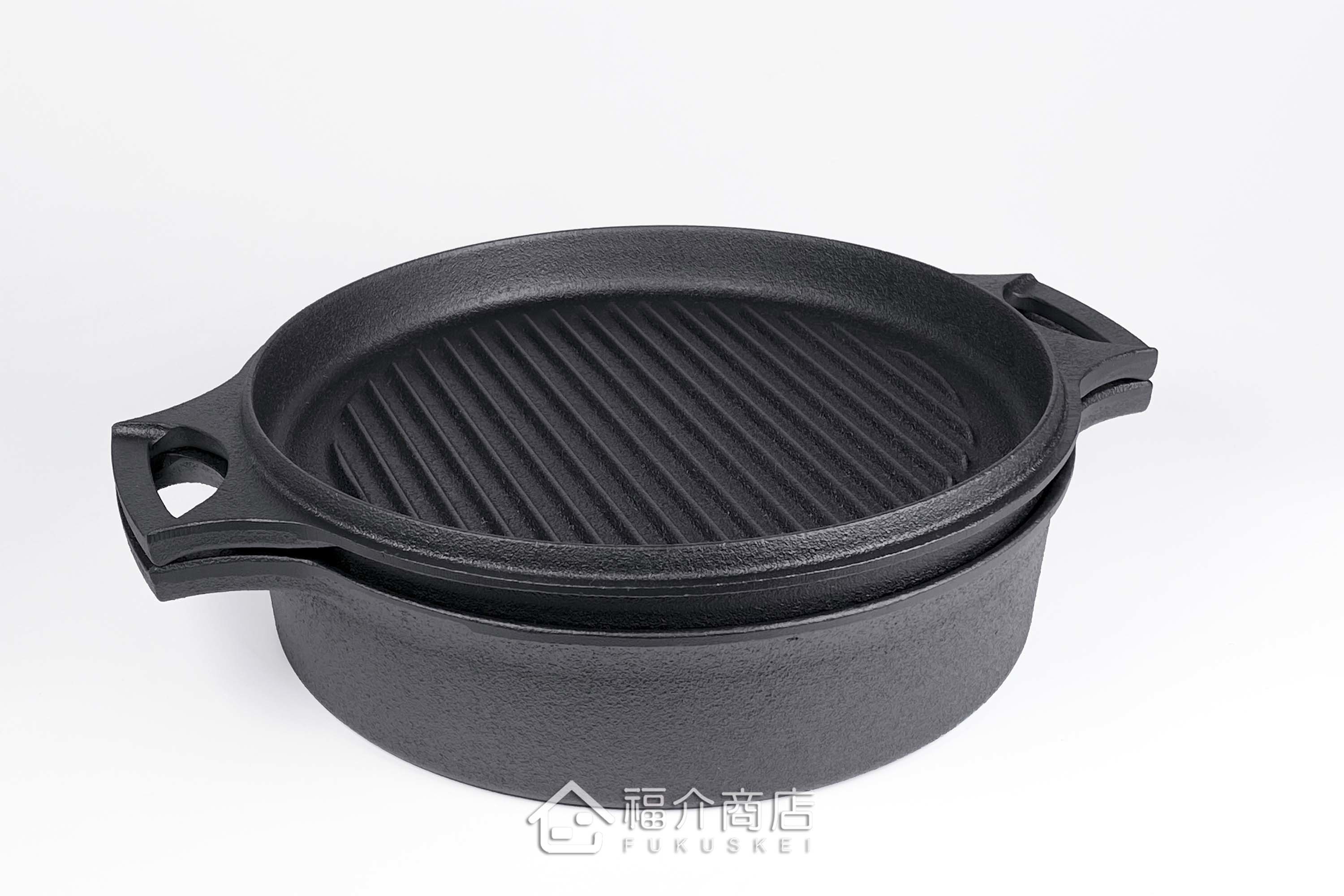 手工打造的鑄鐵鍋,其不規則之鐵肌紋理及氣泡紋正是手工鑄品的可貴之處,因不規則蜂巢鍋面、油佈面薄而廣,可低脂烹調,封存原味與營養,且鐵鍋會釋放出鐵離子溶入食物內,讓您料理出健康美食;且此款萬能鍋鐵蓋可當烤盤,一鍋多用。